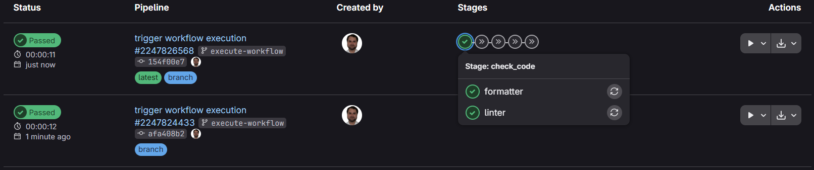 As you can see above in figure 7, only the formatter and linter from the check_code stage are automatically