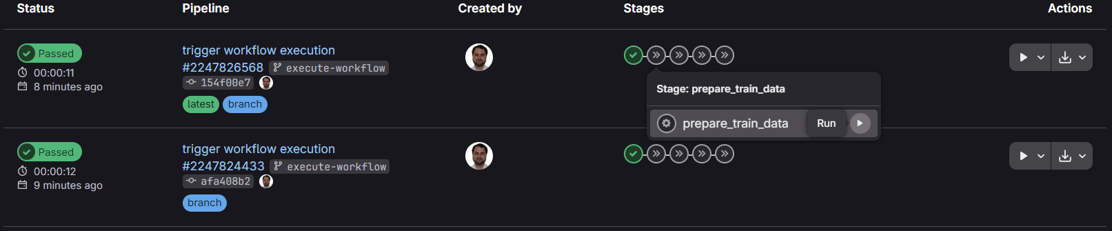 Figure 8: Manual execution of the ‘prepare_train_data’ CI stage (Click image to enlarge).