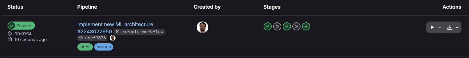 To set up and execute pipelines we used GitLab CI/CD. This was the perfect tool for our use case since we are already storing our workflow code as a repository there. So it just makes sense to directly use these resources instead of spinning up further external tools. Don’t get me wrong: There are fantastic tools out there, that can also be used for these tasks like Apache Airflow, Apache Spark, AWS SageMaker, or Databricks, and they make total sense in company settings where you have to deal with data that comes in high frequencies and with huge datasets in general.